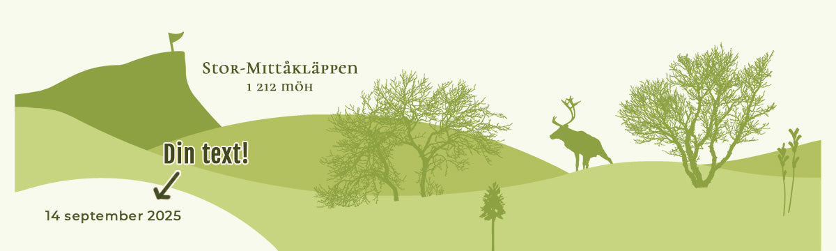 Texten kan anpassas med ett datum, till exempel dagen då du nådde toppen. Men den kan också vara något annat: ett ord, ett årtal, en påminnelse. Du väljer själv, så länge det ryms i den avsedda ytan.